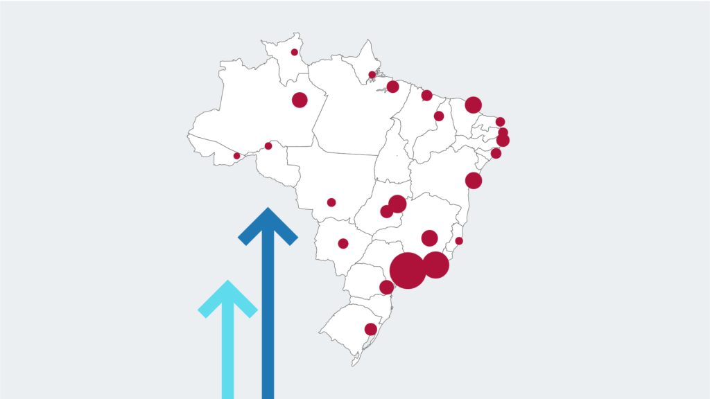 Para maximizar nossa presença na região, distribuímos nosso time de maneira estratégica alocando células operacionais em todas as capitais e cidades com mais 200 mil habitantes. Isso garante que nossos serviços estejam disponíveis nos principais centros urbanos, onde a demanda e a complexidade das operações são maiores.